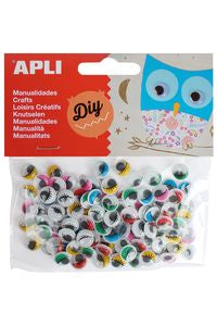 Bolsa 100 ojos moviles de colores redondos con pestañas colores surtidos