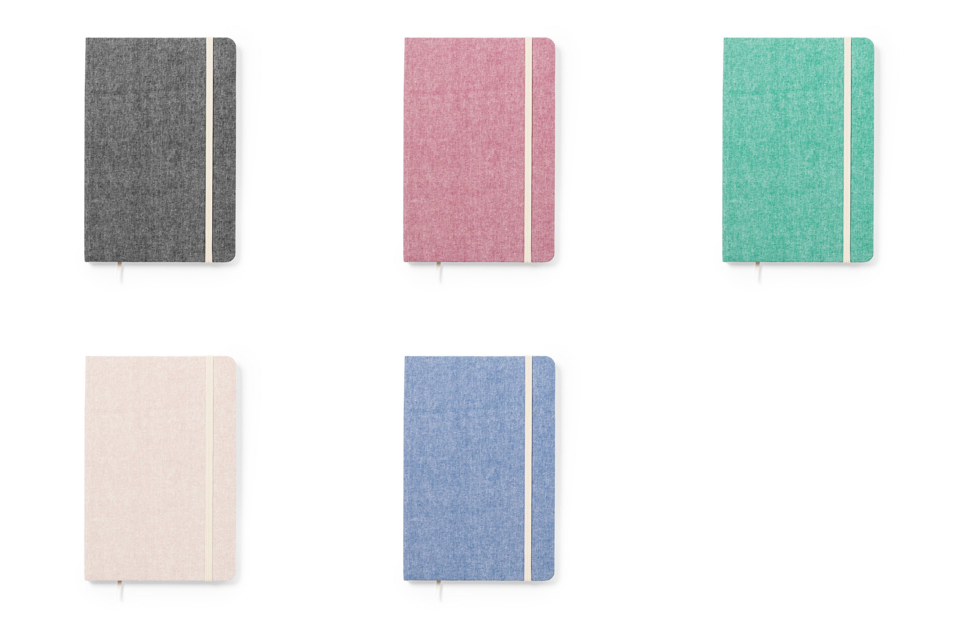 El Bloc de notas personalizado Mark es la elección perfecta para aquellos que se preocupan por el medio ambiente y desean un producto de alta calidad. Fabricada con tela de algodón reciclado, cuenta con una cubierta rígida y un elástico para mantenerla cerrada. Con 100 hojas lisas y un marcapáginas, esta agenda cumple con el estándar de reciclaje global GRS, garantizando su origen y aportando un toque sostenible a tu día a día. Disponible en una amplia gama de colores con una contraportada distintiva de algodón reciclado.