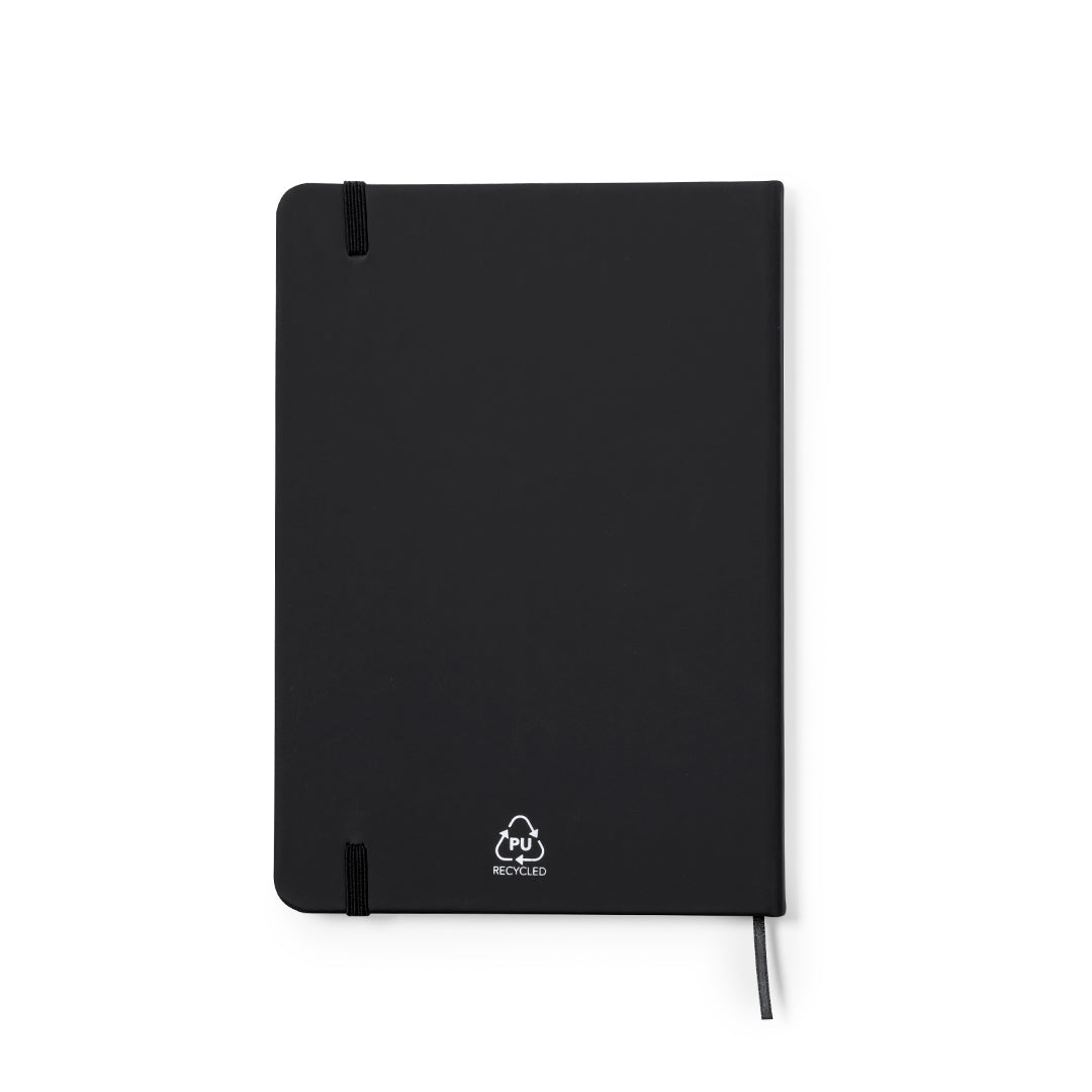 El bloc de notas personalizada Frame cuenta con tapas rígidas de polipiel reciclada en diferentes colores y elástico de cierre, ofreciendo resistencia y elasticidad. Su interior de 100 hojas a una raya permite tomar notas de forma organizada. Una opción sostenible que contribuye a reducir el impacto ambiental con un diseño elegante y duradero.
