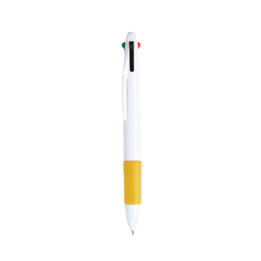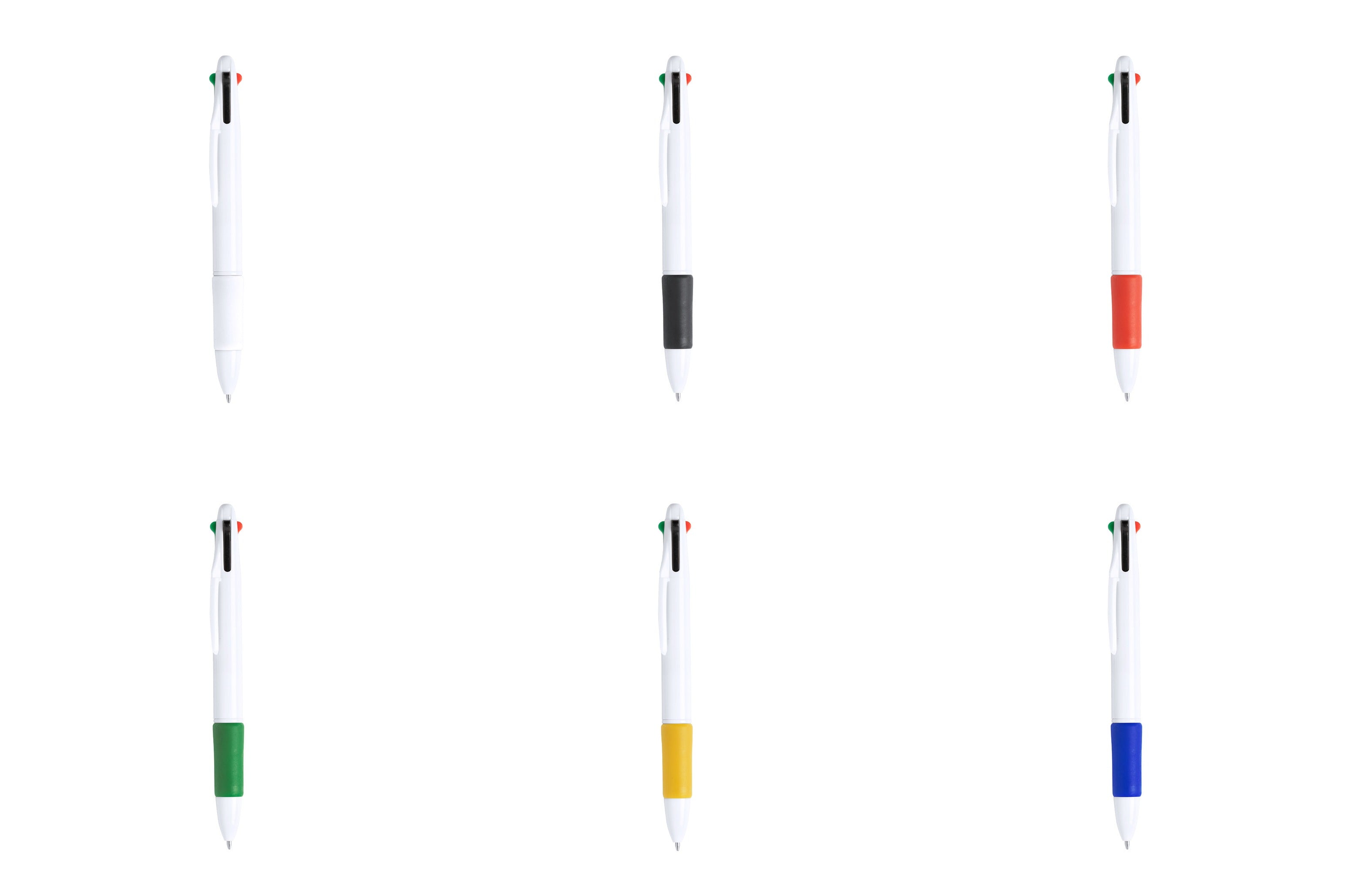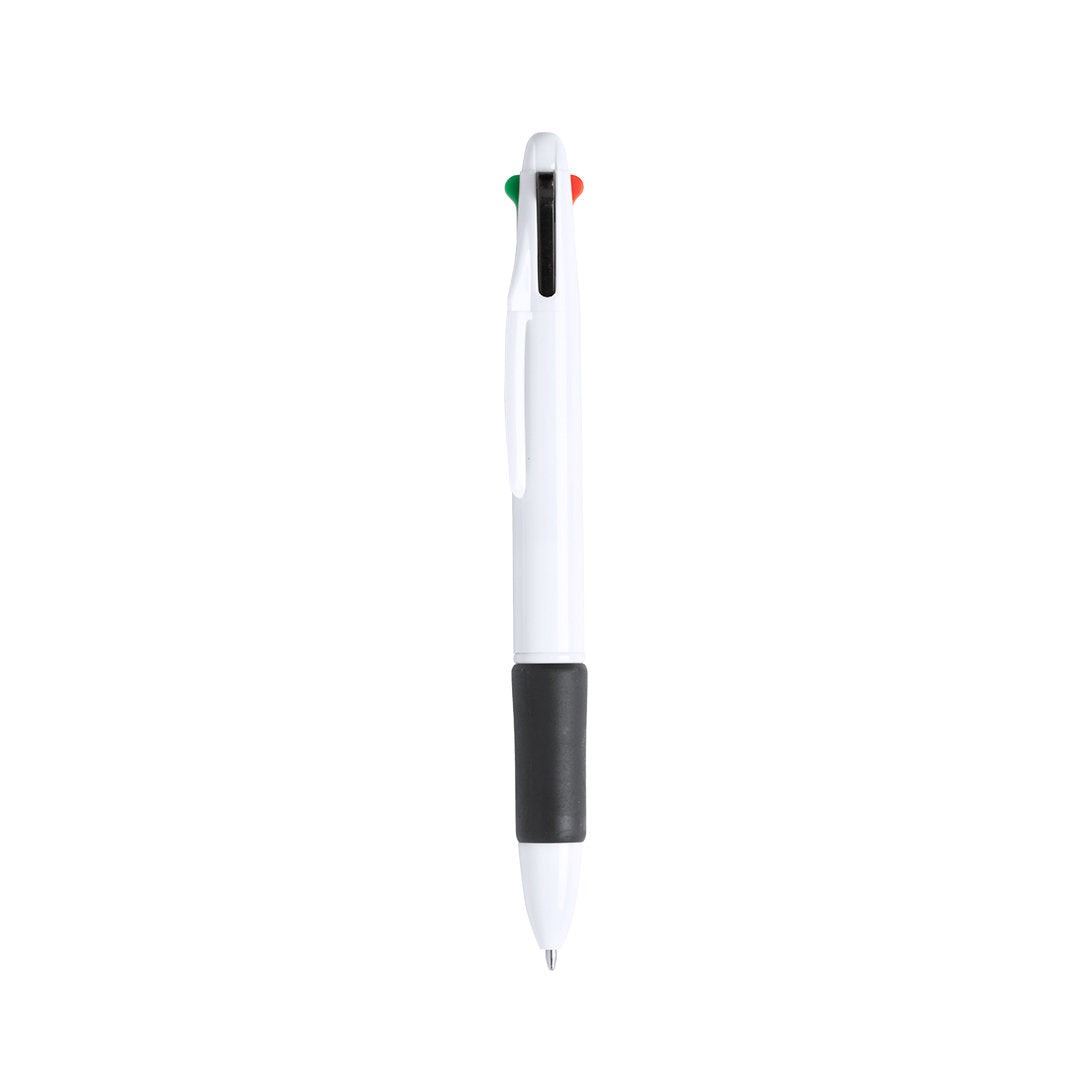 El Bolígrafo Personalizado Klesson es un elegante instrumento de escritura 4 en 1 con mecanismo pulsador retráctil. Su cuerpo sólido blanco y suave empuñadura en colores vivos lo hacen perfecto para cualquier ocasión. Incluye 4 cartuchos en tintas azul, negra, roja y verde.