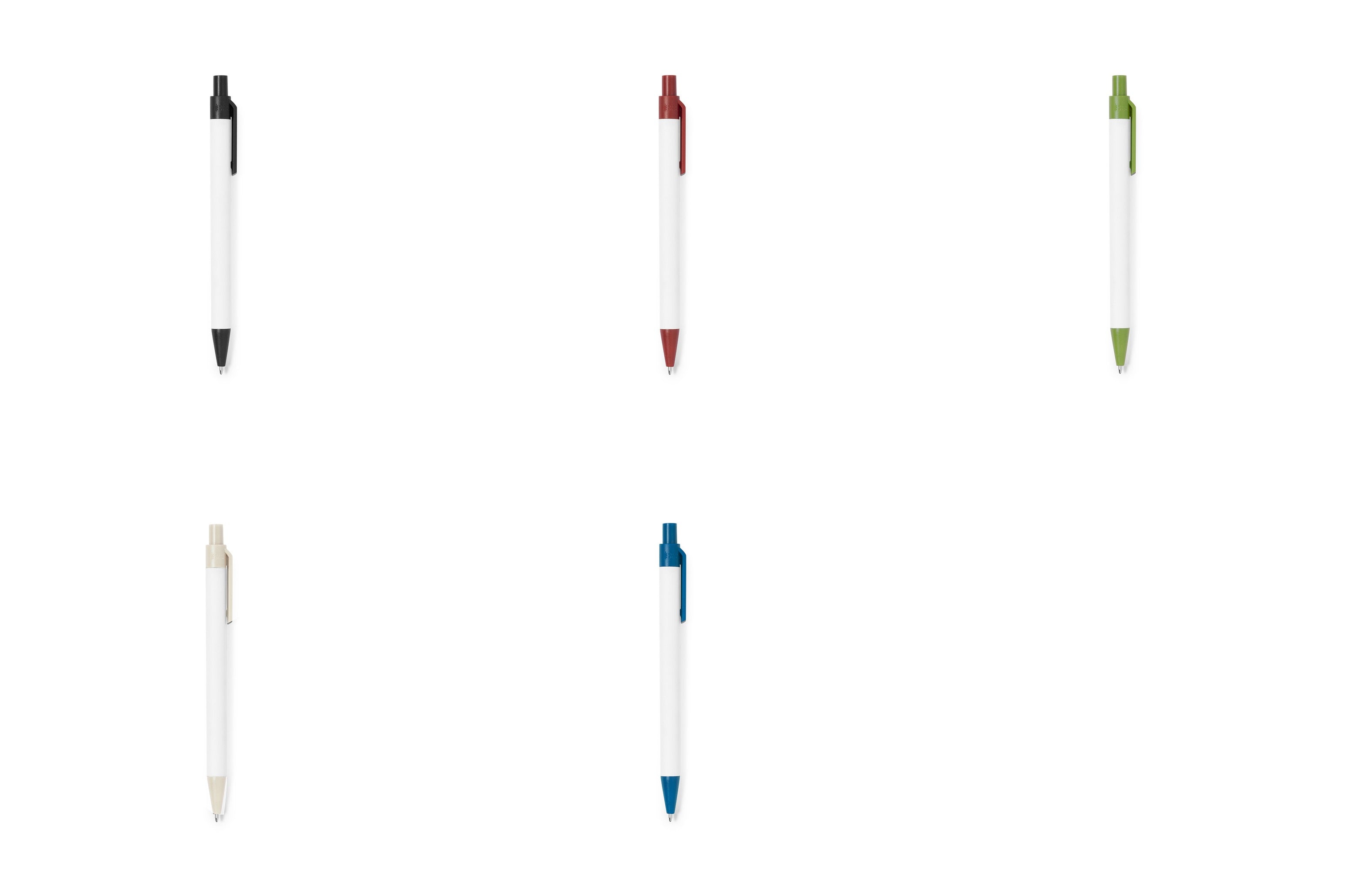 Bolígrafo de mecanismo pulsador con cuerpo en cartón reciclado. Clip, punta y pulsador en caña de trigo. En tinta azul y con distintivo Wheat Straw en la parte superior del bolígrafo.