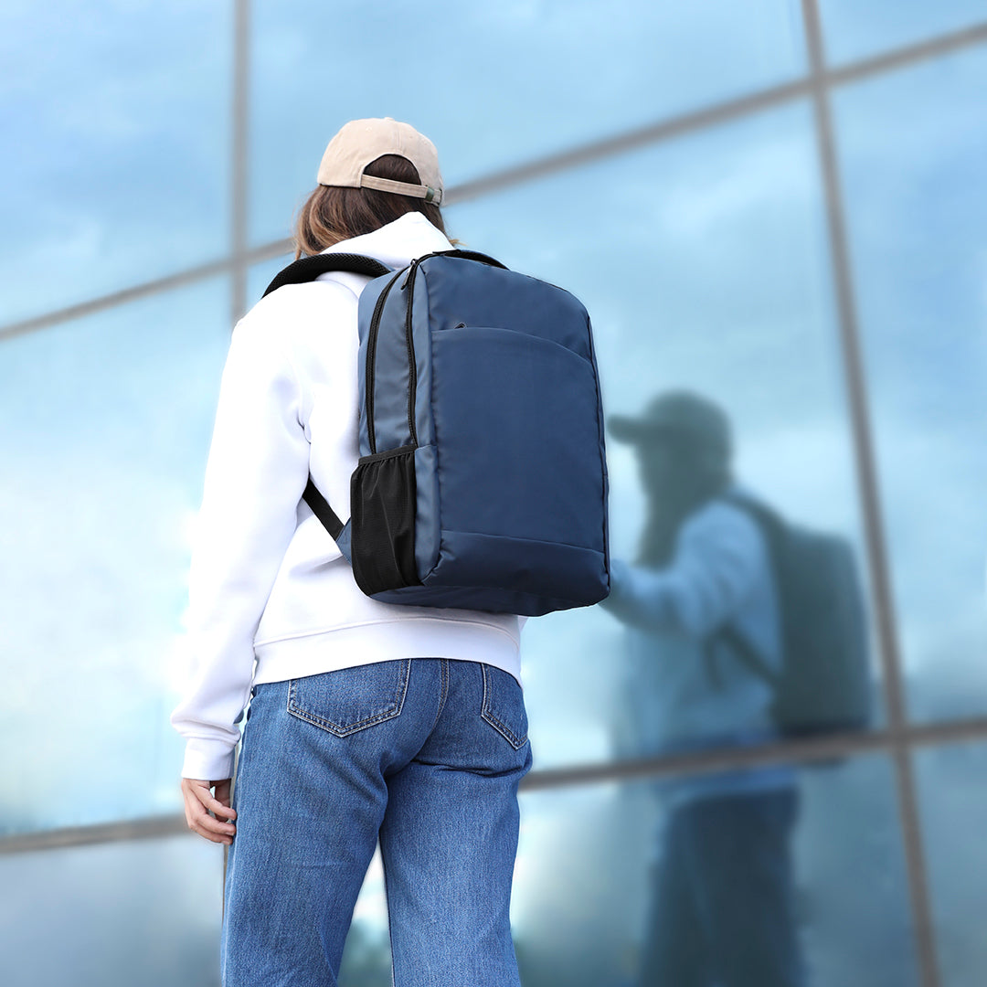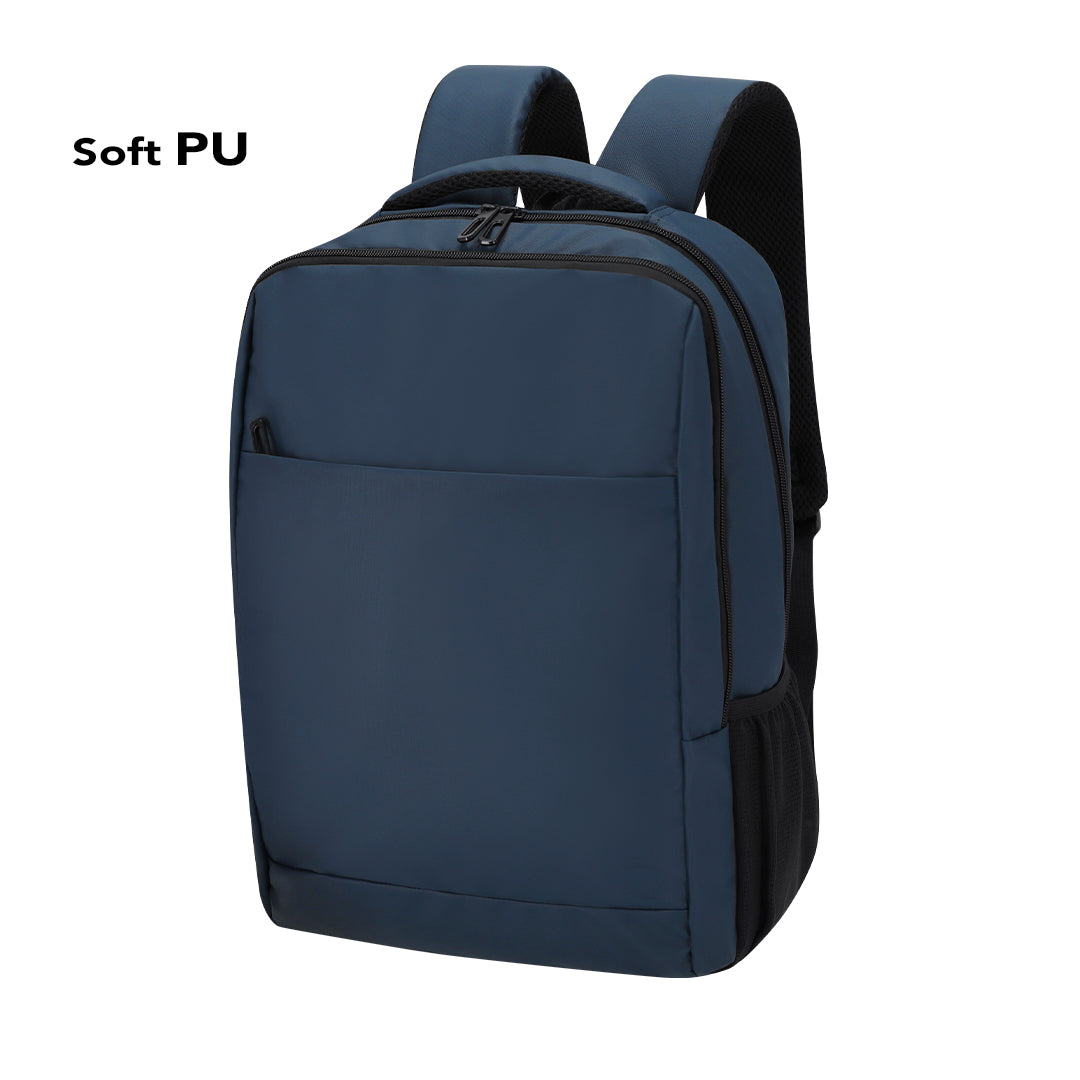 La Mochila Personalizada Velnor es fabricada con materiales de alta calidad, como suave PU, para brindar durabilidad y comodidad. Cuenta con un amplio bolsillo principal con doble cremallera y un bolsillo interior para laptops de hasta 15 pulgadas. Además, su bolsillo frontal invisible, su espalda y cintas acolchadas, y su asa y cinta de transporte para trolley, la convierten en una opción perfecta para viajes.